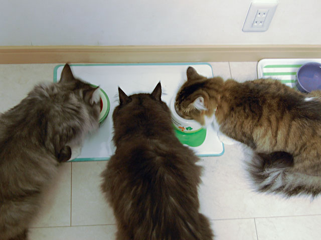 いつもリンちゃんのご飯だけ少し離れた場所に置くのですが