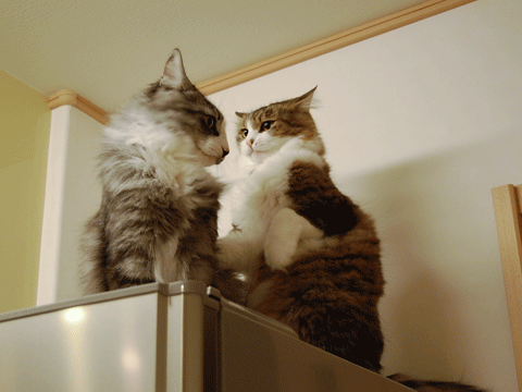 この2ニャンはどうして仲良しになれたのかなー。